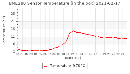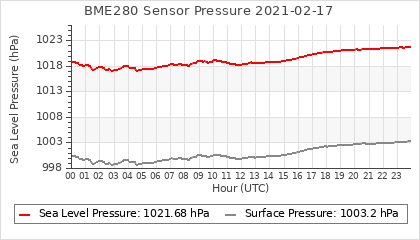 Experimental atmospheric pressure measurement with a simple sensor: BOSCH BME280The instrument is in the data collection box of the CR10X, the temperature and humidity do not reflect the real air conditions, because the box is in the sun and is not properly ventilated for these measurements.