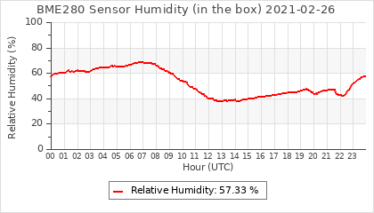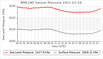 Experimental atmospheric pressure measurement with a simple sensor: BOSCH BME280The instrument is in the data collection box of the CR10X, the temperature and humidity do not reflect the real air conditions, because the box is in the sun and is not properly ventilated for these measurements.