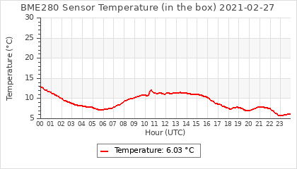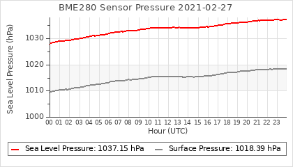 Experimental atmospheric pressure measurement with a simple sensor: BOSCH BME280The instrument is in the data collection box of the CR10X, the temperature and humidity do not reflect the real air conditions, because the box is in the sun and is not properly ventilated for these measurements.