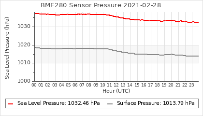 Experimental atmospheric pressure measurement with a simple sensor: BOSCH BME280The instrument is in the data collection box of the CR10X, the temperature and humidity do not reflect the real air conditions, because the box is in the sun and is not properly ventilated for these measurements.