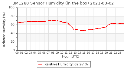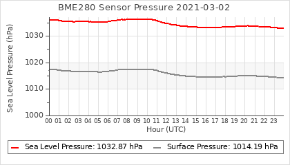 Experimental atmospheric pressure measurement with a simple sensor: BOSCH BME280The instrument is in the data collection box of the CR10X, the temperature and humidity do not reflect the real air conditions, because the box is in the sun and is not properly ventilated for these measurements.