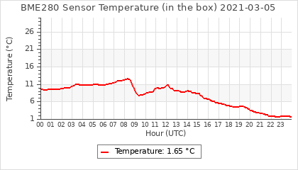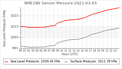 Experimental atmospheric pressure measurement with a simple sensor: BOSCH BME280The instrument is in the data collection box of the CR10X, the temperature and humidity do not reflect the real air conditions, because the box is in the sun and is not properly ventilated for these measurements.