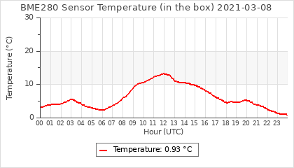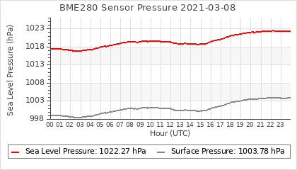 Experimental atmospheric pressure measurement with a simple sensor: BOSCH BME280The instrument is in the data collection box of the CR10X, the temperature and humidity do not reflect the real air conditions, because the box is in the sun and is not properly ventilated for these measurements.