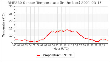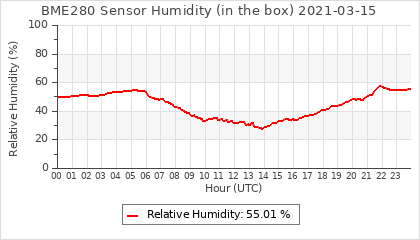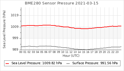 Experimental atmospheric pressure measurement with a simple sensor: BOSCH BME280The instrument is in the data collection box of the CR10X, the temperature and humidity do not reflect the real air conditions, because the box is in the sun and is not properly ventilated for these measurements.