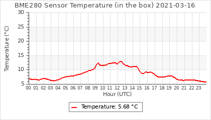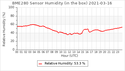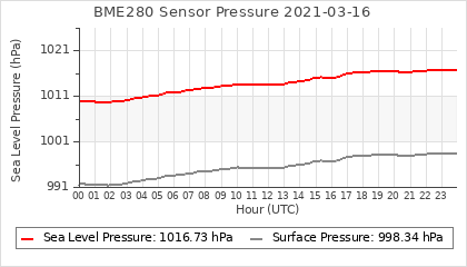 Experimental atmospheric pressure measurement with a simple sensor: BOSCH BME280The instrument is in the data collection box of the CR10X, the temperature and humidity do not reflect the real air conditions, because the box is in the sun and is not properly ventilated for these measurements.