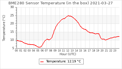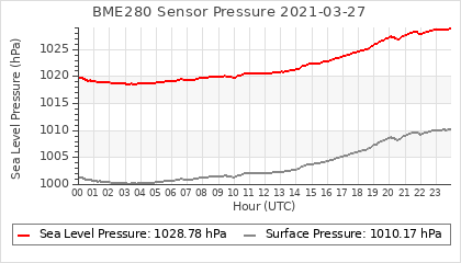 Experimental atmospheric pressure measurement with a simple sensor: BOSCH BME280The instrument is in the data collection box of the CR10X, the temperature and humidity do not reflect the real air conditions, because the box is in the sun and is not properly ventilated for these measurements.