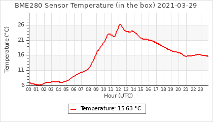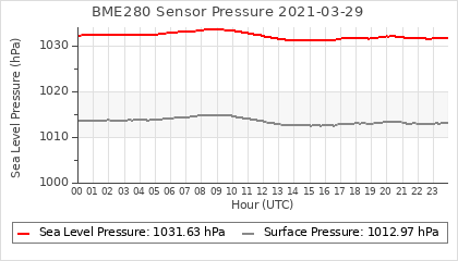 Experimental atmospheric pressure measurement with a simple sensor: BOSCH BME280The instrument is in the data collection box of the CR10X, the temperature and humidity do not reflect the real air conditions, because the box is in the sun and is not properly ventilated for these measurements.