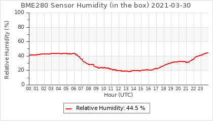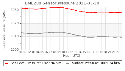 Experimental atmospheric pressure measurement with a simple sensor: BOSCH BME280The instrument is in the data collection box of the CR10X, the temperature and humidity do not reflect the real air conditions, because the box is in the sun and is not properly ventilated for these measurements.