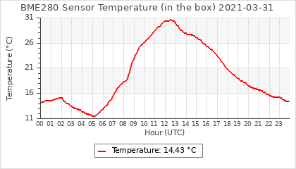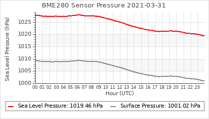 Experimental atmospheric pressure measurement with a simple sensor: BOSCH BME280The instrument is in the data collection box of the CR10X, the temperature and humidity do not reflect the real air conditions, because the box is in the sun and is not properly ventilated for these measurements.