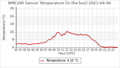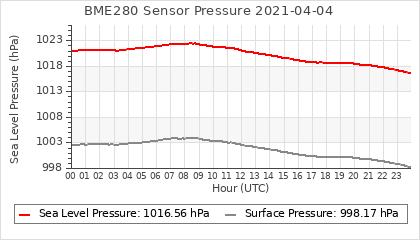 Experimental atmospheric pressure measurement with a simple sensor: BOSCH BME280The instrument is in the data collection box of the CR10X, the temperature and humidity do not reflect the real air conditions, because the box is in the sun and is not properly ventilated for these measurements.