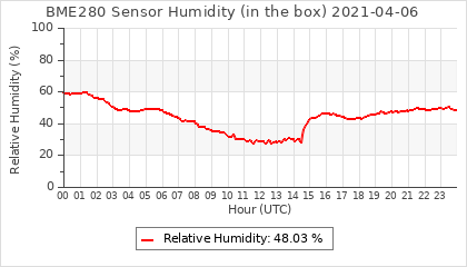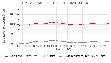 Experimental atmospheric pressure measurement with a simple sensor: BOSCH BME280The instrument is in the data collection box of the CR10X, the temperature and humidity do not reflect the real air conditions, because the box is in the sun and is not properly ventilated for these measurements.