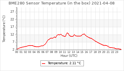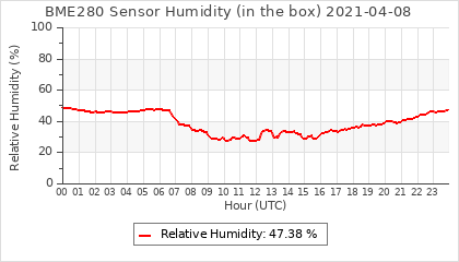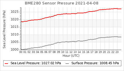 Experimental atmospheric pressure measurement with a simple sensor: BOSCH BME280The instrument is in the data collection box of the CR10X, the temperature and humidity do not reflect the real air conditions, because the box is in the sun and is not properly ventilated for these measurements.