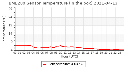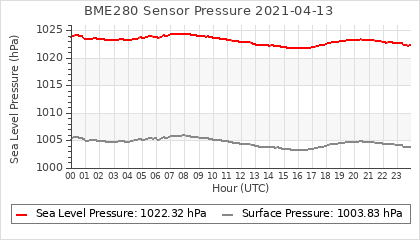 Experimental atmospheric pressure measurement with a simple sensor: BOSCH BME280The instrument is in the data collection box of the CR10X, the temperature and humidity do not reflect the real air conditions, because the box is in the sun and is not properly ventilated for these measurements.