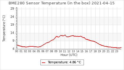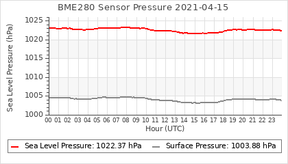 Experimental atmospheric pressure measurement with a simple sensor: BOSCH BME280The instrument is in the data collection box of the CR10X, the temperature and humidity do not reflect the real air conditions, because the box is in the sun and is not properly ventilated for these measurements.