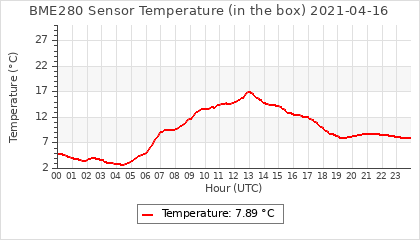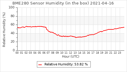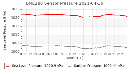 Experimental atmospheric pressure measurement with a simple sensor: BOSCH BME280The instrument is in the data collection box of the CR10X, the temperature and humidity do not reflect the real air conditions, because the box is in the sun and is not properly ventilated for these measurements.