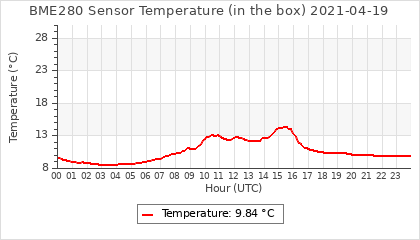 Experimental atmospheric pressure measurement with a simple sensor: BOSCH BME280The instrument is in the data collection box of the CR10X, the temperature and humidity do not reflect the real air conditions, because the box is in the sun and is not properly ventilated for these measurements.