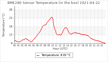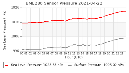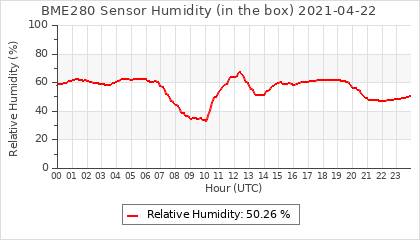 Experimental atmospheric pressure measurement with a simple sensor: BOSCH BME280The instrument is in the data collection box of the CR10X, the temperature and humidity do not reflect the real air conditions, because the box is in the sun and is not properly ventilated for these measurements.