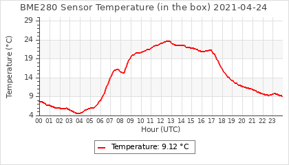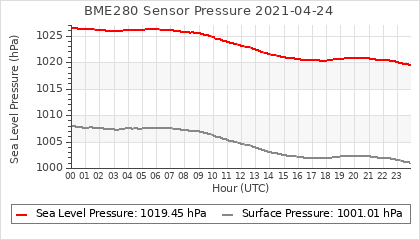 Experimental atmospheric pressure measurement with a simple sensor: BOSCH BME280The instrument is in the data collection box of the CR10X, the temperature and humidity do not reflect the real air conditions, because the box is in the sun and is not properly ventilated for these measurements.