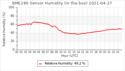 Experimental atmospheric pressure measurement with a simple sensor: BOSCH BME280The instrument is in the data collection box of the CR10X, the temperature and humidity do not reflect the real air conditions, because the box is in the sun and is not properly ventilated for these measurements.