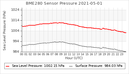 Experimental atmospheric pressure measurement with a simple sensor: BOSCH BME280The instrument is in the data collection box of the CR10X, the temperature and humidity do not reflect the real air conditions, because the box is in the sun and is not properly ventilated for these measurements.