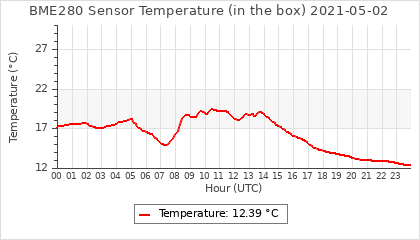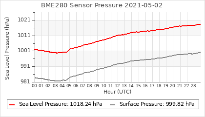 Experimental atmospheric pressure measurement with a simple sensor: BOSCH BME280The instrument is in the data collection box of the CR10X, the temperature and humidity do not reflect the real air conditions, because the box is in the sun and is not properly ventilated for these measurements.