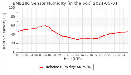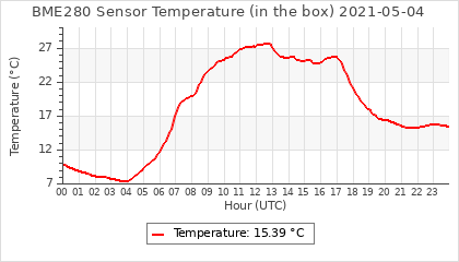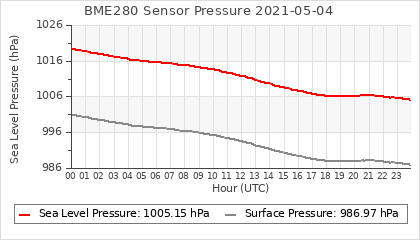 Experimental atmospheric pressure measurement with a simple sensor: BOSCH BME280The instrument is in the data collection box of the CR10X, the temperature and humidity do not reflect the real air conditions, because the box is in the sun and is not properly ventilated for these measurements.