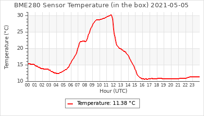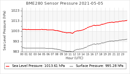 Experimental atmospheric pressure measurement with a simple sensor: BOSCH BME280The instrument is in the data collection box of the CR10X, the temperature and humidity do not reflect the real air conditions, because the box is in the sun and is not properly ventilated for these measurements.