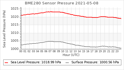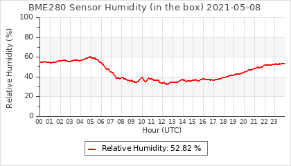 Experimental atmospheric pressure measurement with a simple sensor: BOSCH BME280The instrument is in the data collection box of the CR10X, the temperature and humidity do not reflect the real air conditions, because the box is in the sun and is not properly ventilated for these measurements.