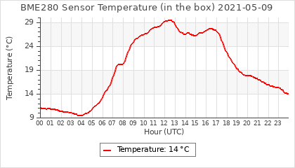 Experimental atmospheric pressure measurement with a simple sensor: BOSCH BME280The instrument is in the data collection box of the CR10X, the temperature and humidity do not reflect the real air conditions, because the box is in the sun and is not properly ventilated for these measurements.
