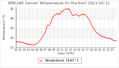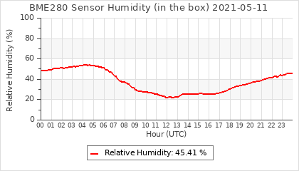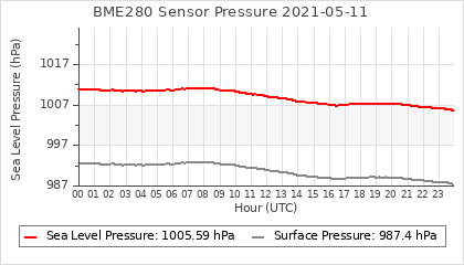 Experimental atmospheric pressure measurement with a simple sensor: BOSCH BME280The instrument is in the data collection box of the CR10X, the temperature and humidity do not reflect the real air conditions, because the box is in the sun and is not properly ventilated for these measurements.