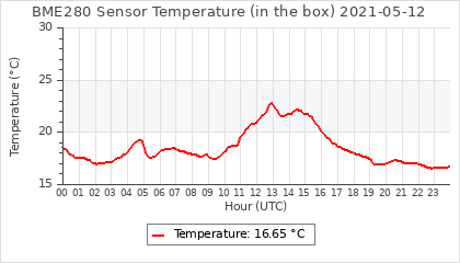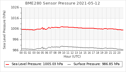 Experimental atmospheric pressure measurement with a simple sensor: BOSCH BME280The instrument is in the data collection box of the CR10X, the temperature and humidity do not reflect the real air conditions, because the box is in the sun and is not properly ventilated for these measurements.