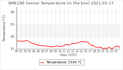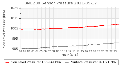 Experimental atmospheric pressure measurement with a simple sensor: BOSCH BME280The instrument is in the data collection box of the CR10X, the temperature and humidity do not reflect the real air conditions, because the box is in the sun and is not properly ventilated for these measurements.