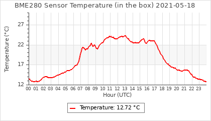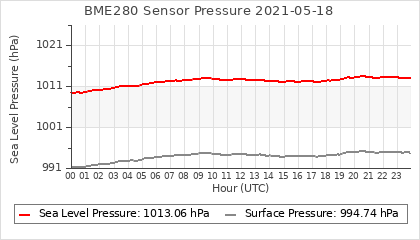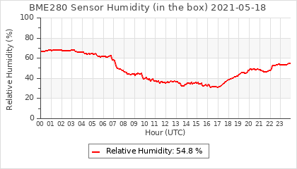 Experimental atmospheric pressure measurement with a simple sensor: BOSCH BME280The instrument is in the data collection box of the CR10X, the temperature and humidity do not reflect the real air conditions, because the box is in the sun and is not properly ventilated for these measurements.