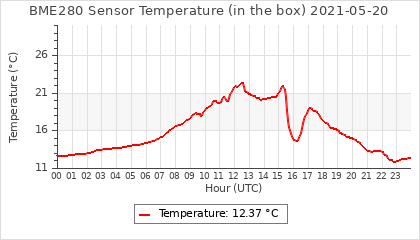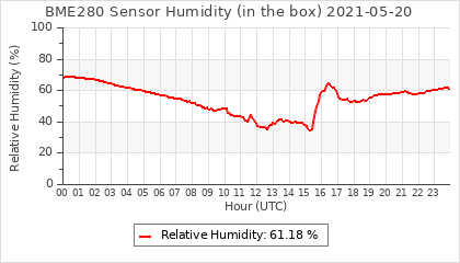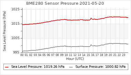 Experimental atmospheric pressure measurement with a simple sensor: BOSCH BME280The instrument is in the data collection box of the CR10X, the temperature and humidity do not reflect the real air conditions, because the box is in the sun and is not properly ventilated for these measurements.