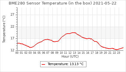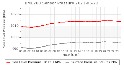 Experimental atmospheric pressure measurement with a simple sensor: BOSCH BME280The instrument is in the data collection box of the CR10X, the temperature and humidity do not reflect the real air conditions, because the box is in the sun and is not properly ventilated for these measurements.