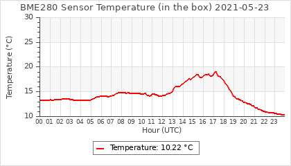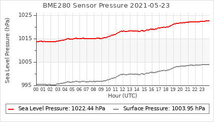 Experimental atmospheric pressure measurement with a simple sensor: BOSCH BME280The instrument is in the data collection box of the CR10X, the temperature and humidity do not reflect the real air conditions, because the box is in the sun and is not properly ventilated for these measurements.