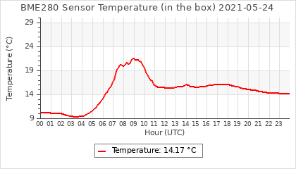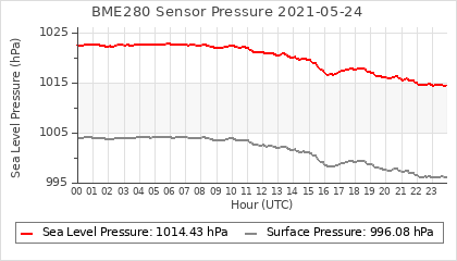 Experimental atmospheric pressure measurement with a simple sensor: BOSCH BME280The instrument is in the data collection box of the CR10X, the temperature and humidity do not reflect the real air conditions, because the box is in the sun and is not properly ventilated for these measurements.