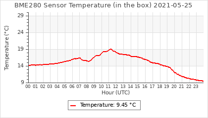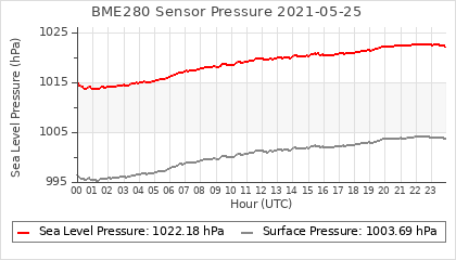 Experimental atmospheric pressure measurement with a simple sensor: BOSCH BME280The instrument is in the data collection box of the CR10X, the temperature and humidity do not reflect the real air conditions, because the box is in the sun and is not properly ventilated for these measurements.