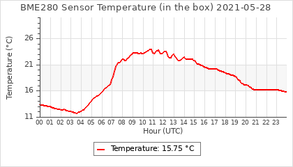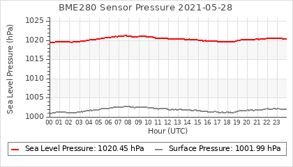 Experimental atmospheric pressure measurement with a simple sensor: BOSCH BME280The instrument is in the data collection box of the CR10X, the temperature and humidity do not reflect the real air conditions, because the box is in the sun and is not properly ventilated for these measurements.