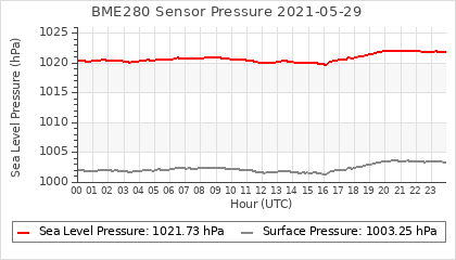 Experimental atmospheric pressure measurement with a simple sensor: BOSCH BME280The instrument is in the data collection box of the CR10X, the temperature and humidity do not reflect the real air conditions, because the box is in the sun and is not properly ventilated for these measurements.