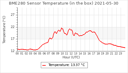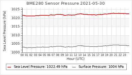 Experimental atmospheric pressure measurement with a simple sensor: BOSCH BME280The instrument is in the data collection box of the CR10X, the temperature and humidity do not reflect the real air conditions, because the box is in the sun and is not properly ventilated for these measurements.