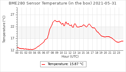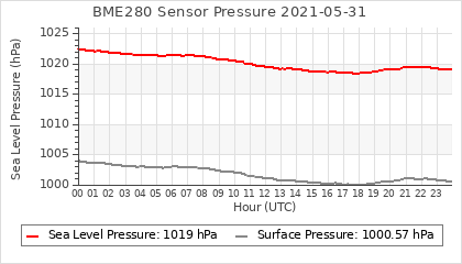 Experimental atmospheric pressure measurement with a simple sensor: BOSCH BME280The instrument is in the data collection box of the CR10X, the temperature and humidity do not reflect the real air conditions, because the box is in the sun and is not properly ventilated for these measurements.