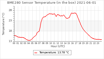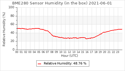 Experimental atmospheric pressure measurement with a simple sensor: BOSCH BME280The instrument is in the data collection box of the CR10X, the temperature and humidity do not reflect the real air conditions, because the box is in the sun and is not properly ventilated for these measurements.
