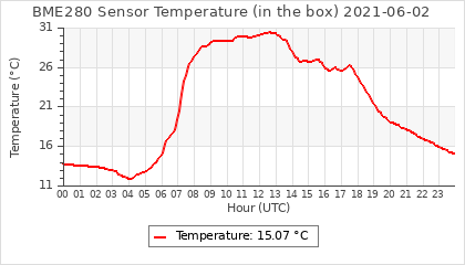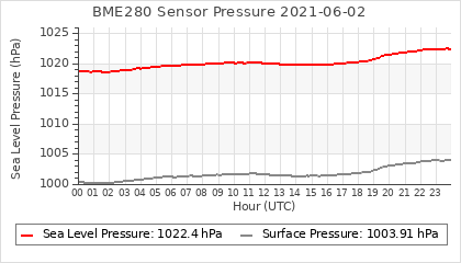Experimental atmospheric pressure measurement with a simple sensor: BOSCH BME280The instrument is in the data collection box of the CR10X, the temperature and humidity do not reflect the real air conditions, because the box is in the sun and is not properly ventilated for these measurements.