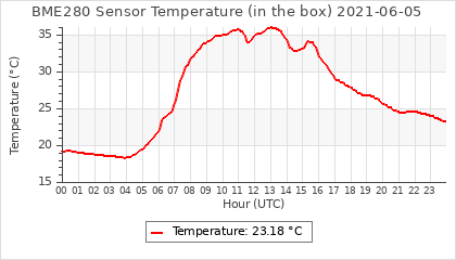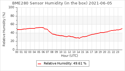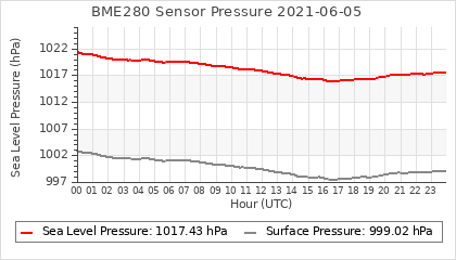 Experimental atmospheric pressure measurement with a simple sensor: BOSCH BME280The instrument is in the data collection box of the CR10X, the temperature and humidity do not reflect the real air conditions, because the box is in the sun and is not properly ventilated for these measurements.