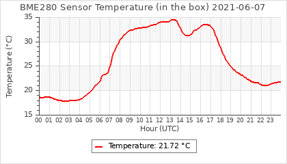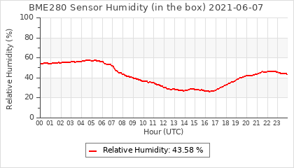 Experimental atmospheric pressure measurement with a simple sensor: BOSCH BME280The instrument is in the data collection box of the CR10X, the temperature and humidity do not reflect the real air conditions, because the box is in the sun and is not properly ventilated for these measurements.