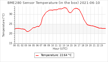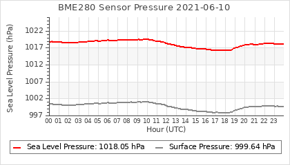 Experimental atmospheric pressure measurement with a simple sensor: BOSCH BME280The instrument is in the data collection box of the CR10X, the temperature and humidity do not reflect the real air conditions, because the box is in the sun and is not properly ventilated for these measurements.