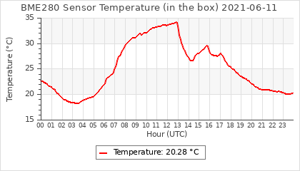 Experimental atmospheric pressure measurement with a simple sensor: BOSCH BME280The instrument is in the data collection box of the CR10X, the temperature and humidity do not reflect the real air conditions, because the box is in the sun and is not properly ventilated for these measurements.