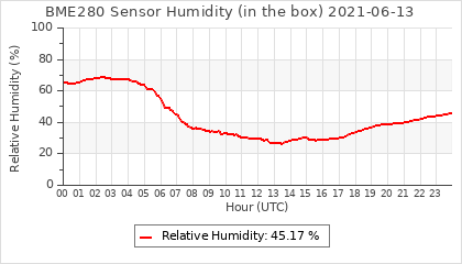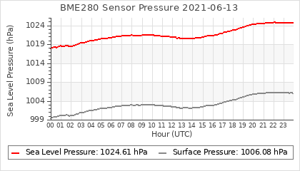 Experimental atmospheric pressure measurement with a simple sensor: BOSCH BME280The instrument is in the data collection box of the CR10X, the temperature and humidity do not reflect the real air conditions, because the box is in the sun and is not properly ventilated for these measurements.