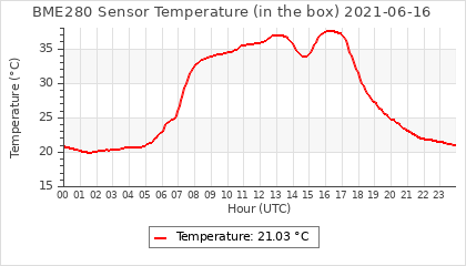 Experimental atmospheric pressure measurement with a simple sensor: BOSCH BME280The instrument is in the data collection box of the CR10X, the temperature and humidity do not reflect the real air conditions, because the box is in the sun and is not properly ventilated for these measurements.